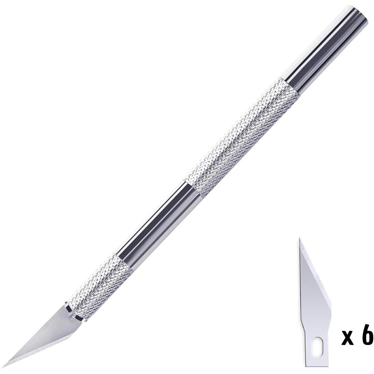 - Inclut un scalpel + 6 lames (celle montée + 5 de rechange).
