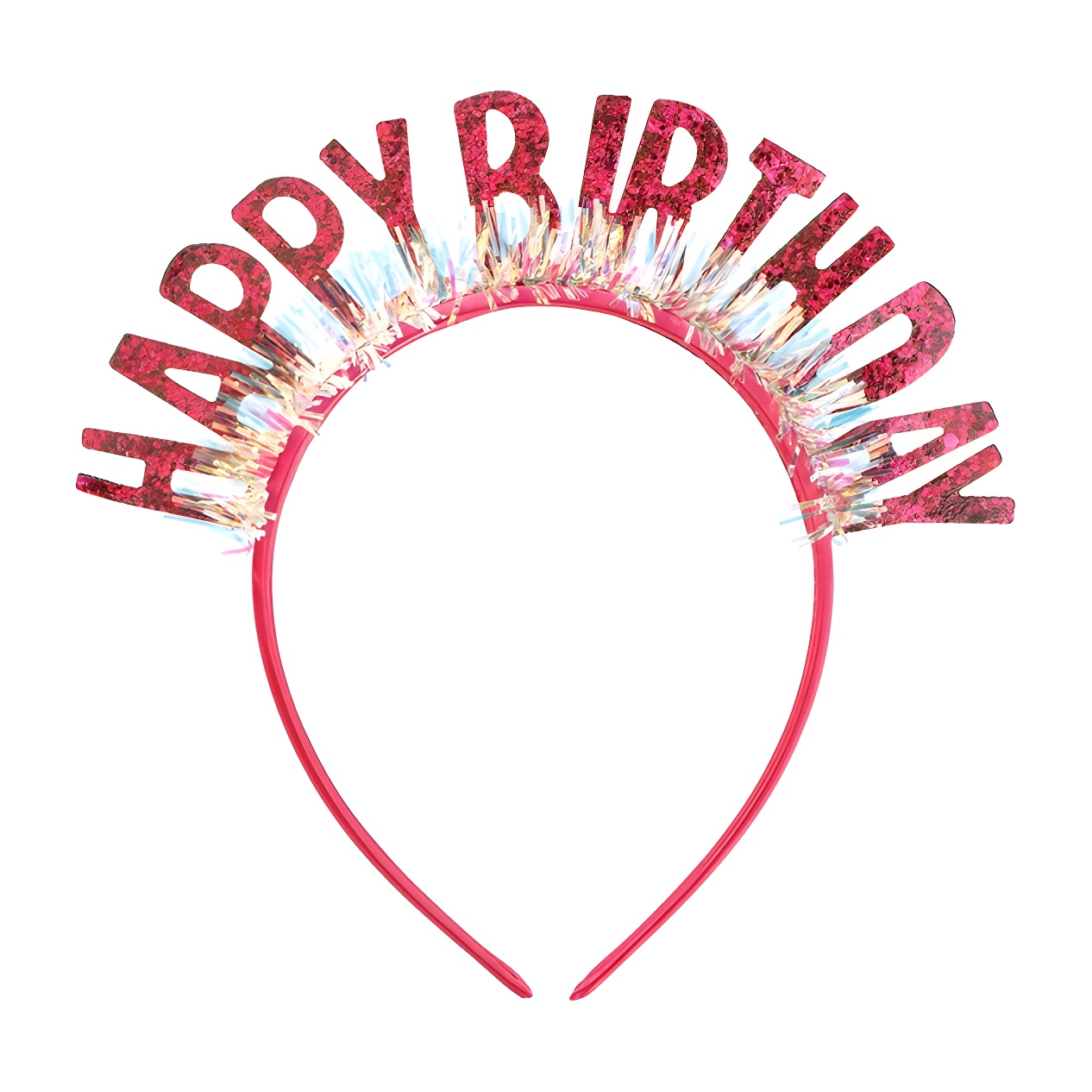 Serre-tête festif 'Happy Birthday' fuchsia, aux lettres recouvertes de paillettes pour un éclat supplémentaire lors des anniversaires d'enfants. Des franges holographiques multicolores ajoutent couleur et mouvement. Format compact 18 x 18 cm - idéal pour votre fille le jour de son anniversaire. Léger et confortable, il sublime les photos et apporte immédiatement une ambiance festive.