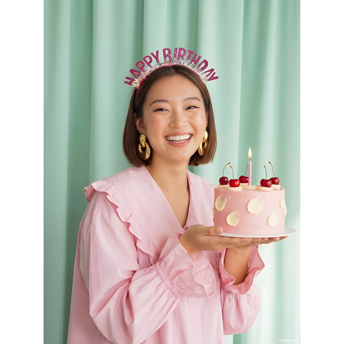 - Lettres 'Happy Birthday' en paillettes roses apportant une touche brillante et remarquée.
