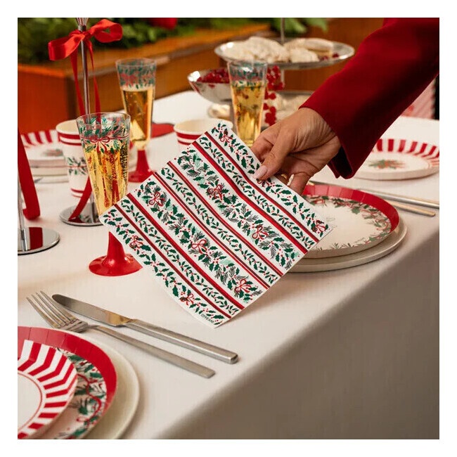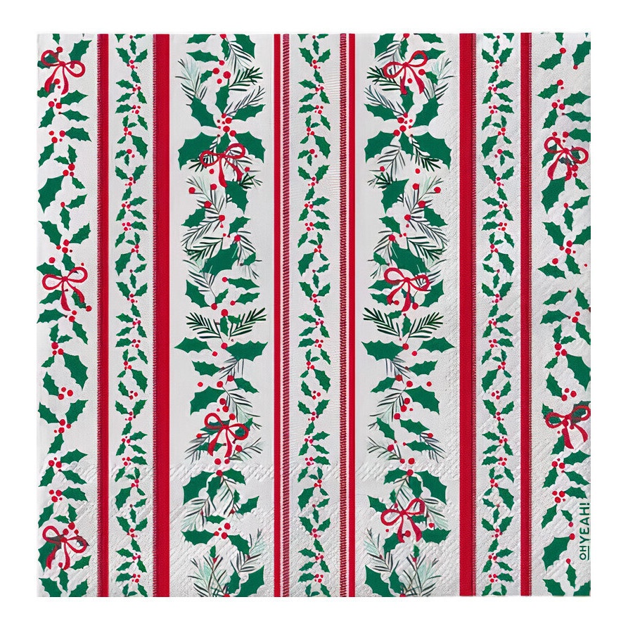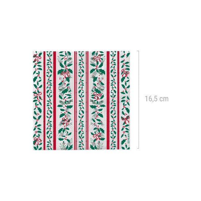 Serviettes 16,5 cm avec motifs de feuilles de houx - 30 unités