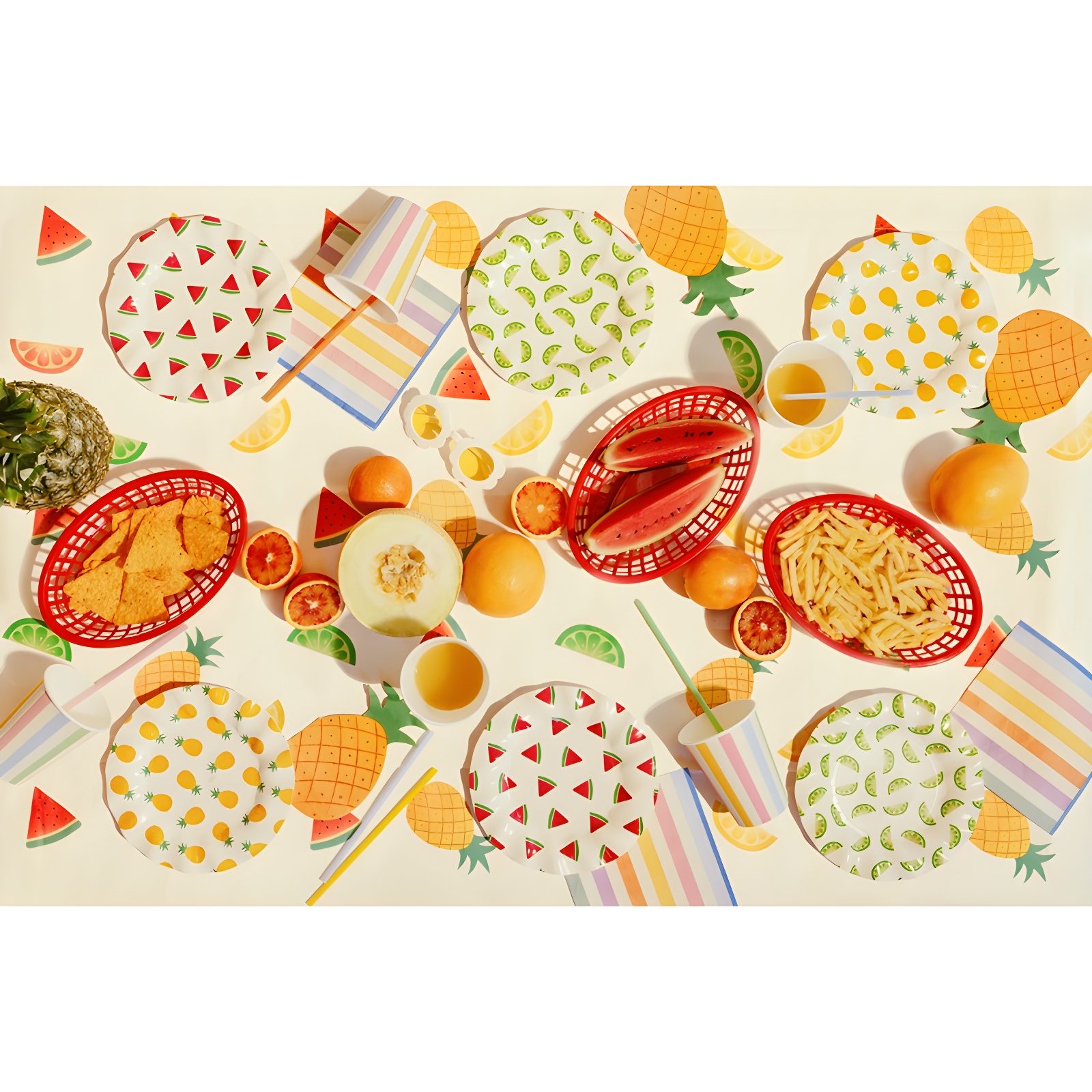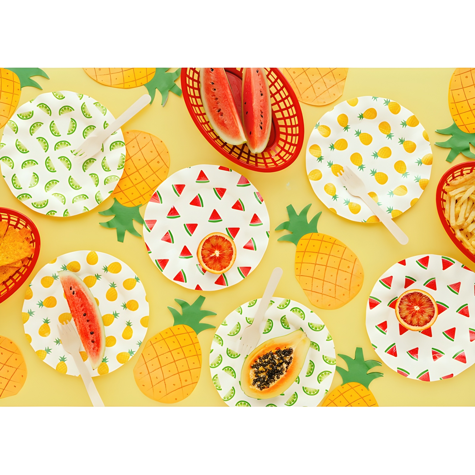 Serviettes en papier au motif ananas joyeux dans des tons jaune et vert. Idéales pour donner une touche tropicale à vos anniversaires, réunions et fêtes informelles. À deux couches pour une meilleure absorption et un toucher doux, elles sont conçues pour habiller votre table avec style et sans complication. Un design coloré qui dynamise instantanément toute ambiance festive.