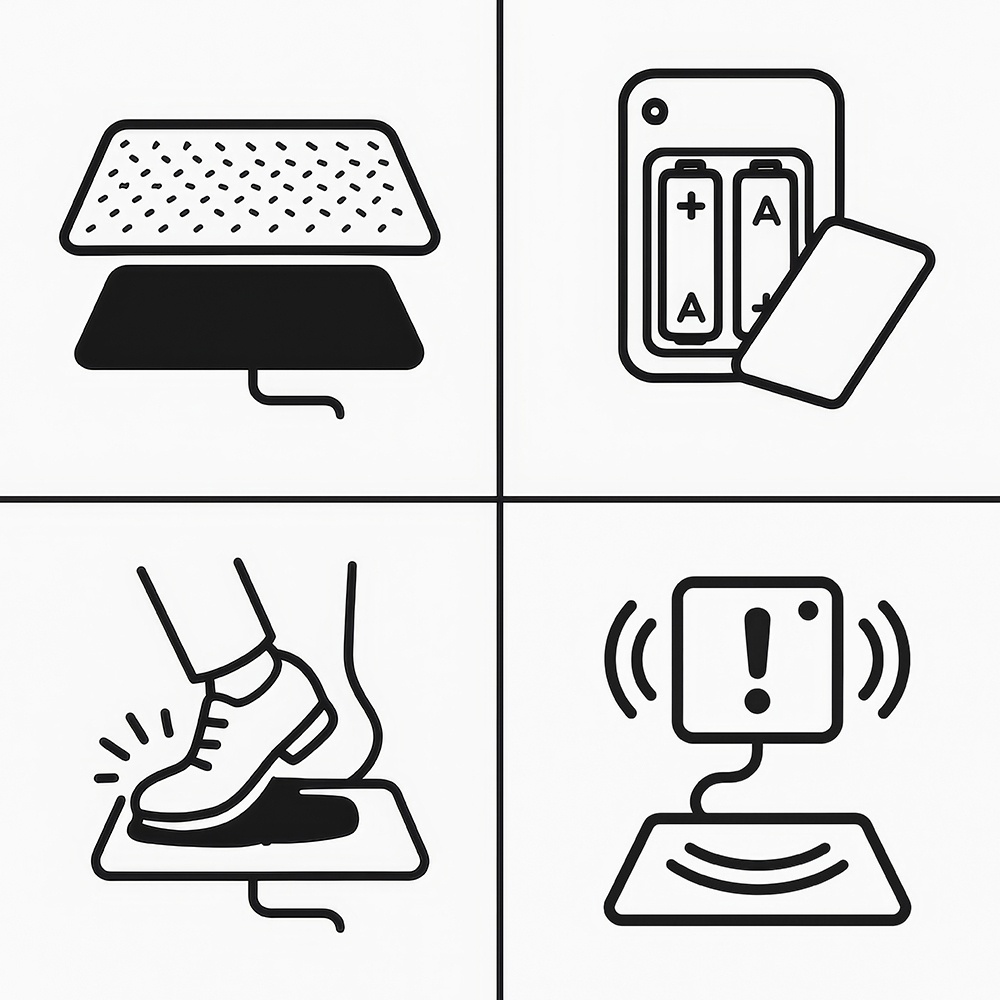 • Se place sous le paillasson avec un capteur qui, lorsque vous le piétinez, reproduit un son d'Halloween.