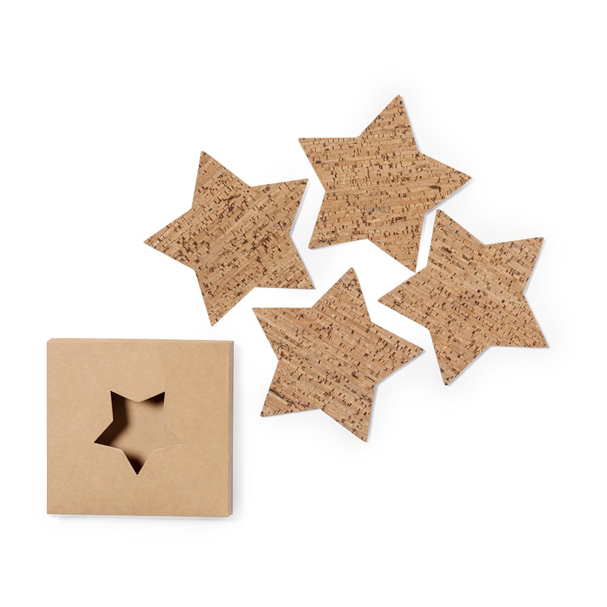 • Ensemble de 4 sous-verres en forme d'étoile fabriqués en liège naturel.
