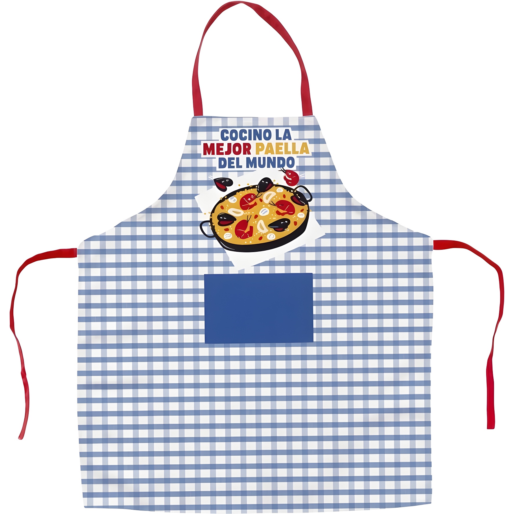 Affichez votre passion pour la paella avec ce tablier au design joyeux et au message amusant: « Je cuisine la meilleure paella du monde ».