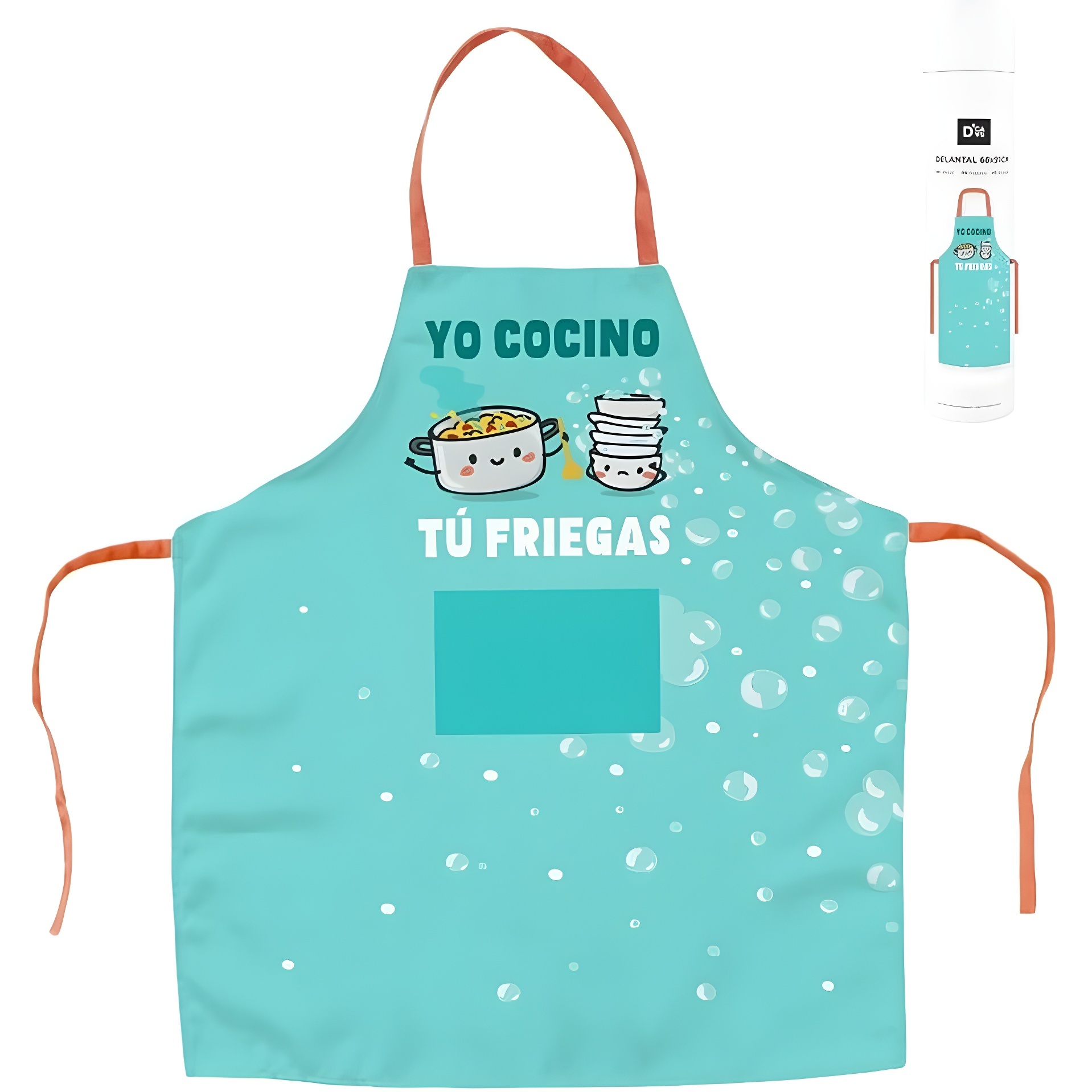 • Message amusant « Je cuisine, vous faites la vaisselle » qui encourage le jeu et les rires.