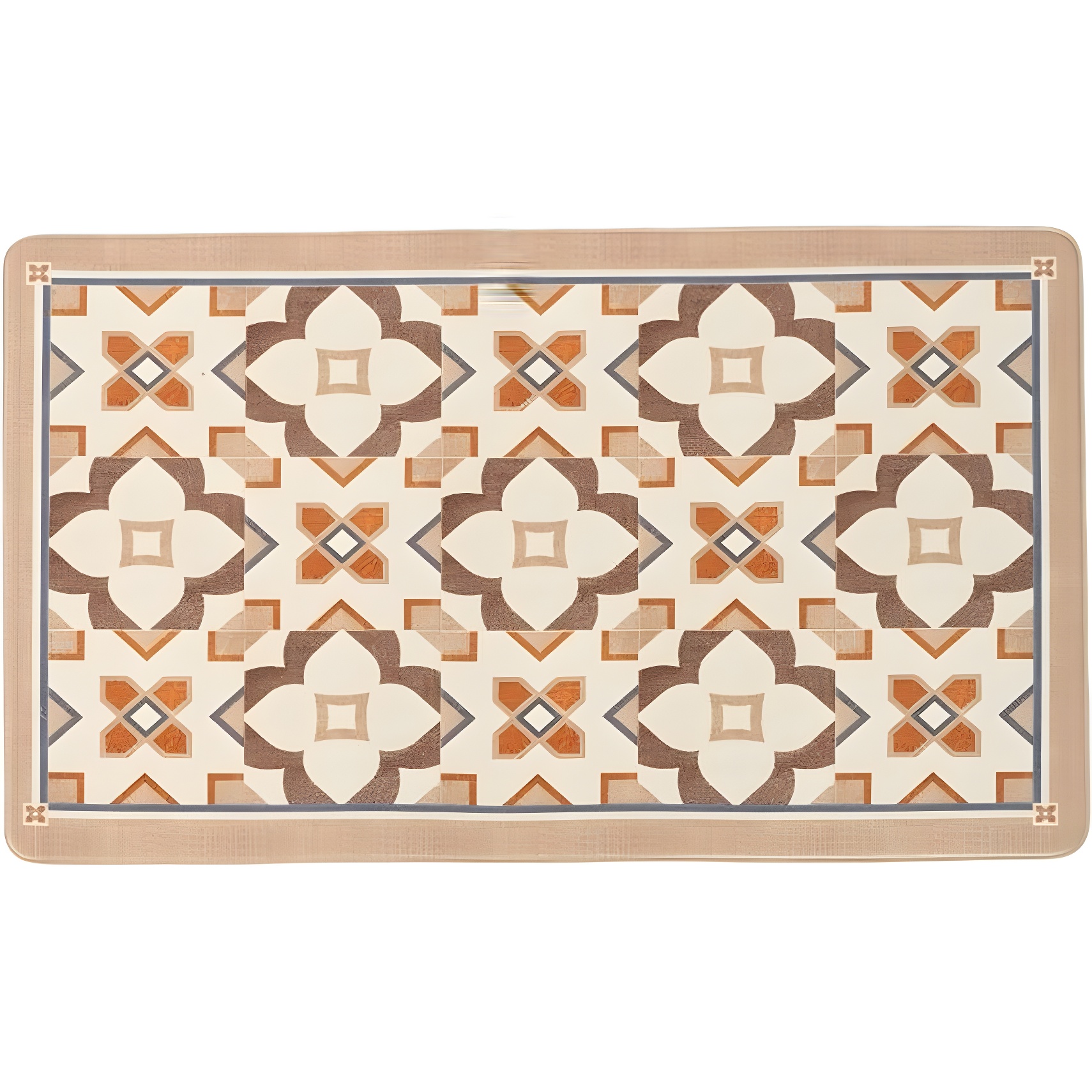 Tapis au motif inspiré des carreaux hydrauliques classiques, apportant une touche vintage et élégante à votre cuisine. Son dessin géométrique et ses teintes chaudes créent un point focal décoratif qui complète votre intérieur sans l'alourdir. Idéal pour rénover les zones de préparation et insuffler de la personnalité avec une note rétro.