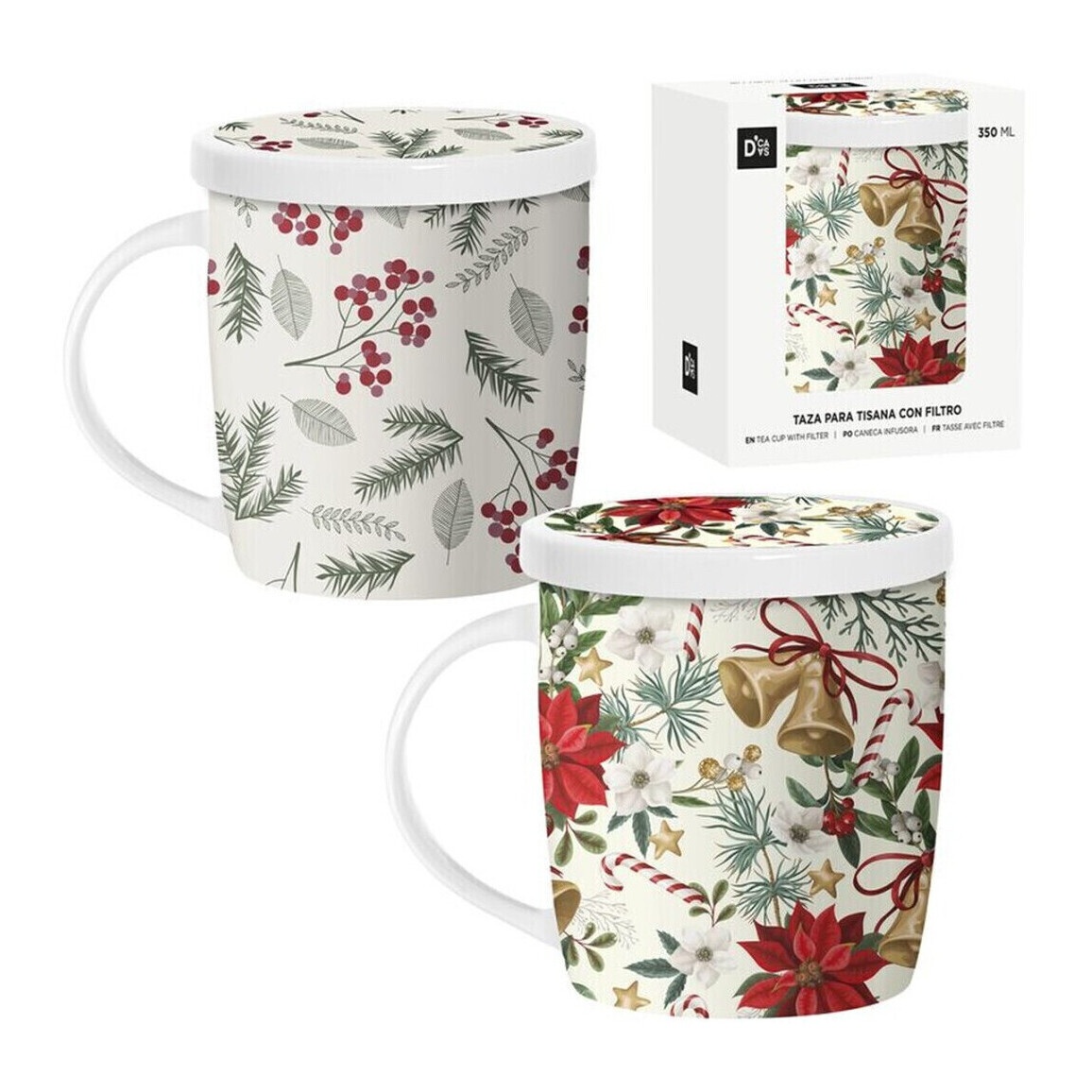 Tasse de 350 ml avec motifs de Noël et filtre à thé - 1 unité