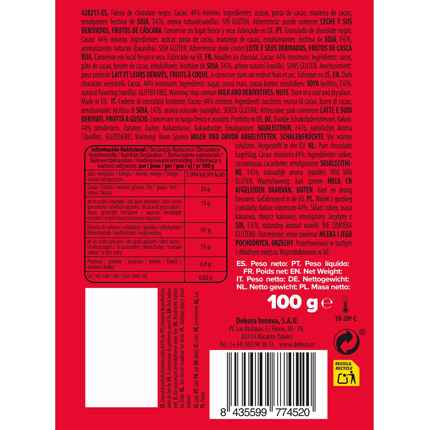 Vermicelles au chocolat noir 100 g - Dekora